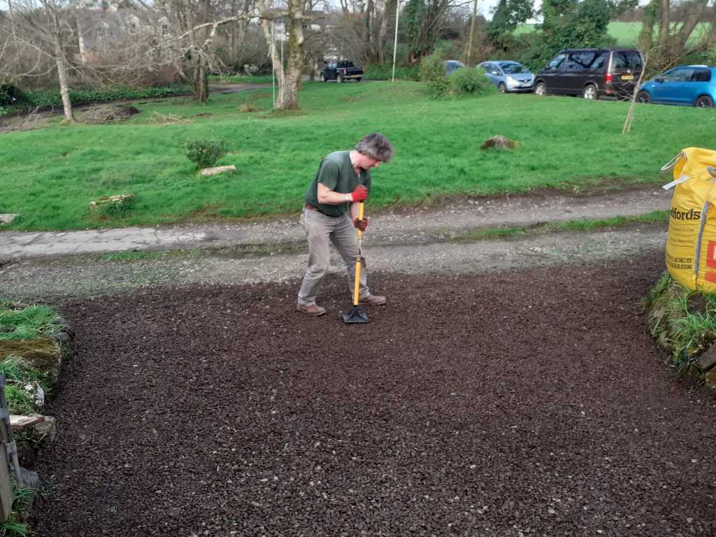 What a beautiful job. Here we gave a moss-ridden old driveway a wonderful new lease of life. We ripped up the tatty old weed surpressant and put in a whole new one, much stronger and with better placement. We then re-levelled the whole surface to make it even and enable much more efficient water run-off. Once this was complete, we worked in a whole new layer of locally sourced granite chippings which was carefully measured and leveled off. The result being a beautiful new driveway which the owners can now look at it with pride.